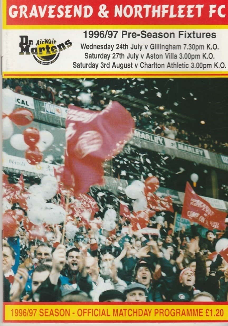 Match: Gravesend & Northfleet v Charlton Athletic Competition: Friendly Date: 03-Aug-1996 Comments: Joint issue for Gillingham and Aston Villa friendlies Rating: 4 Condition: Very good Weight in grams: 120