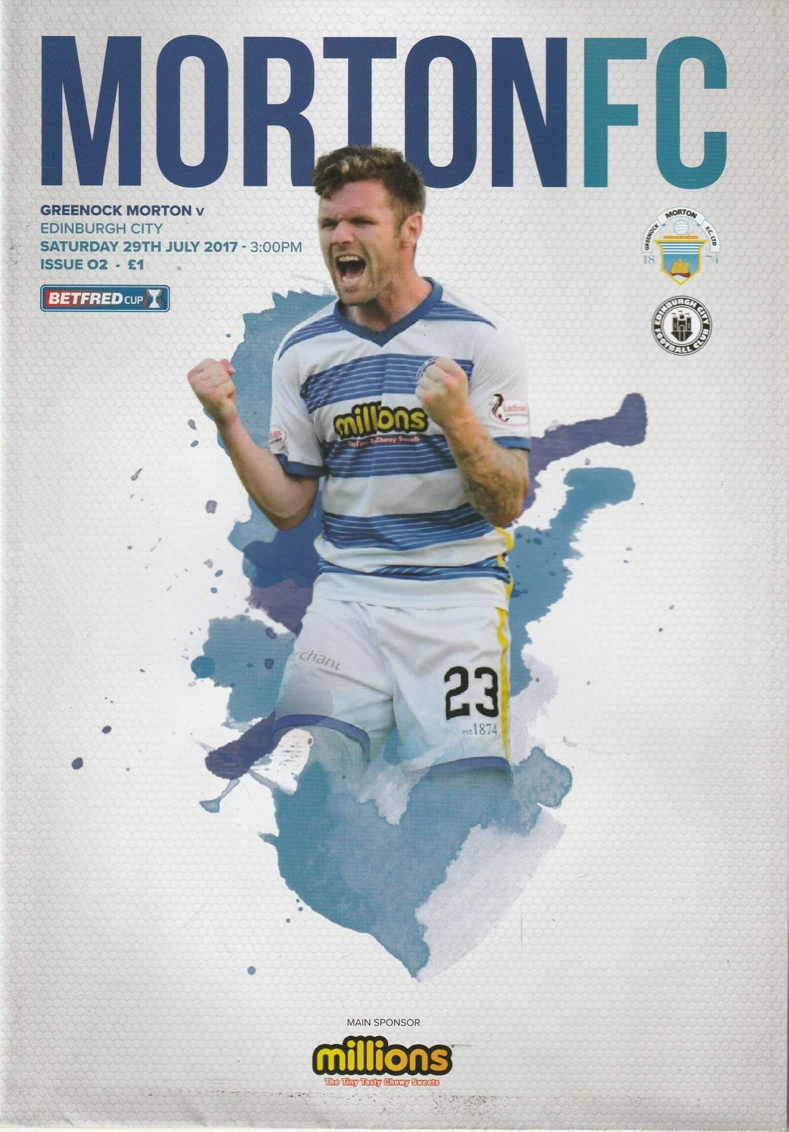 Match: Greenock Morton v Edinburgh City Competition: Betfred Cup Group F Date: 29-Jul-2017 Comments: Rating: 4 Condition: Very good Weight in grams: 200