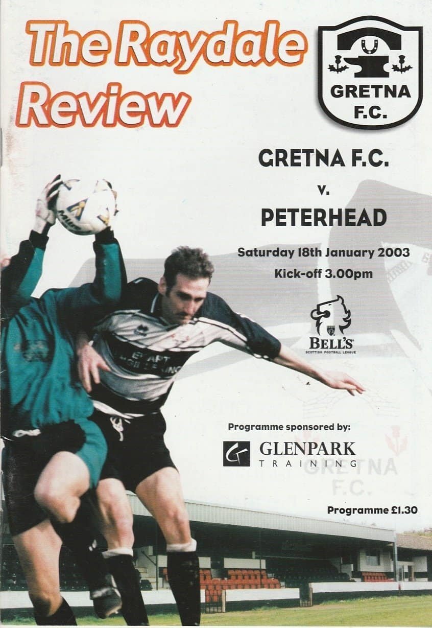 Match: Gretna v Peterhead Competition: Scottish League Division 3 Date: 18-Jan-2003 Comments: Rating: 4 Condition: Very good Weight in grams: 140