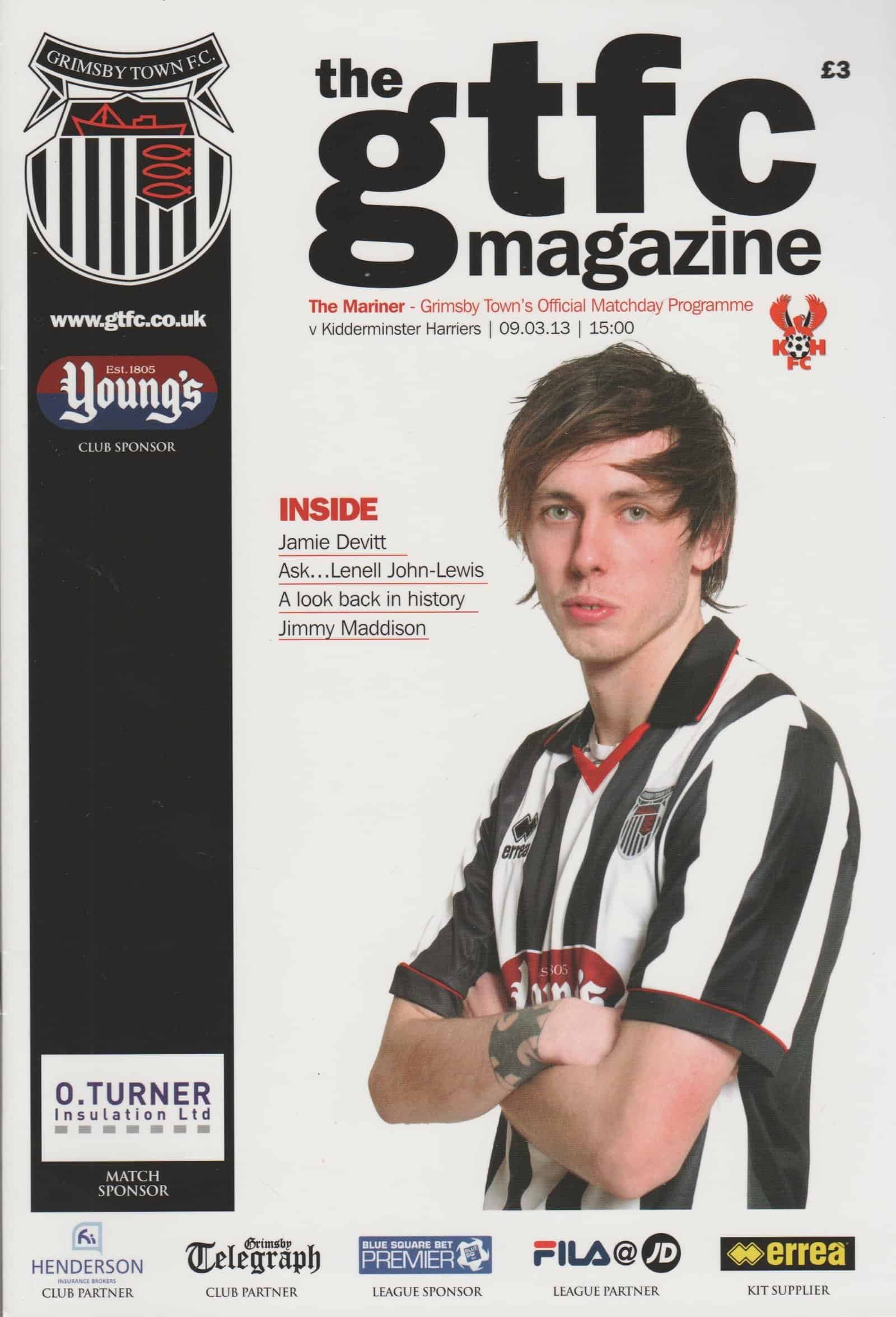 Match: Grimsby Town v Kidderminster Harriers Competition: Blue Square Premier Date: 09-Mar-2013 Comments: Rating: 5 Condition: Excellent Weight in grams: 160