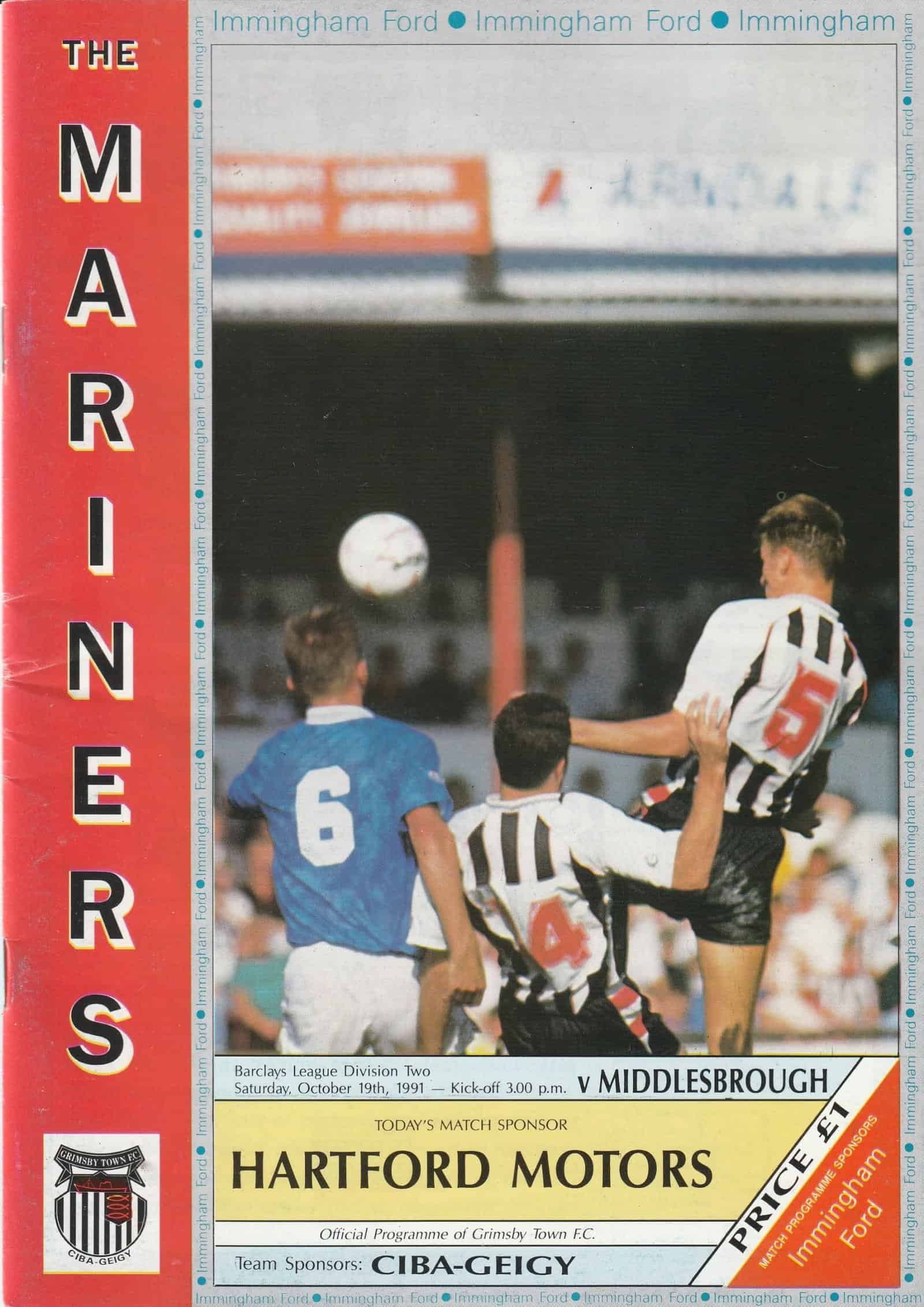 Match: Grimsby Town v Middlesbrough Competition: League Division 2 Date: 19-Oct-1991 Comments: Rating: 4 Condition: Very good Weight in grams: 120