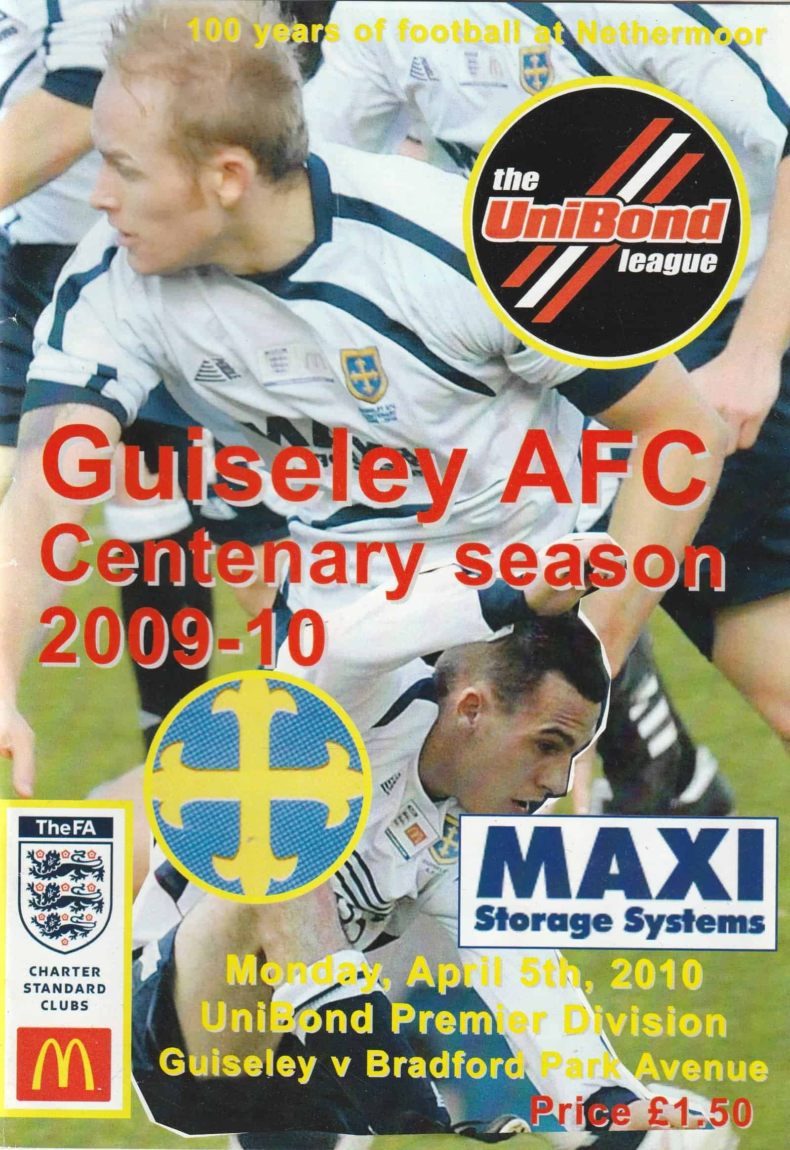 Match: Guiseley v Bradford Park Avenue Competition: Unibond League Premier Division Date: 05-Apr-2010 Comments: Includes team sheet Rating: 4 Condition: Very good Weight in grams: 100