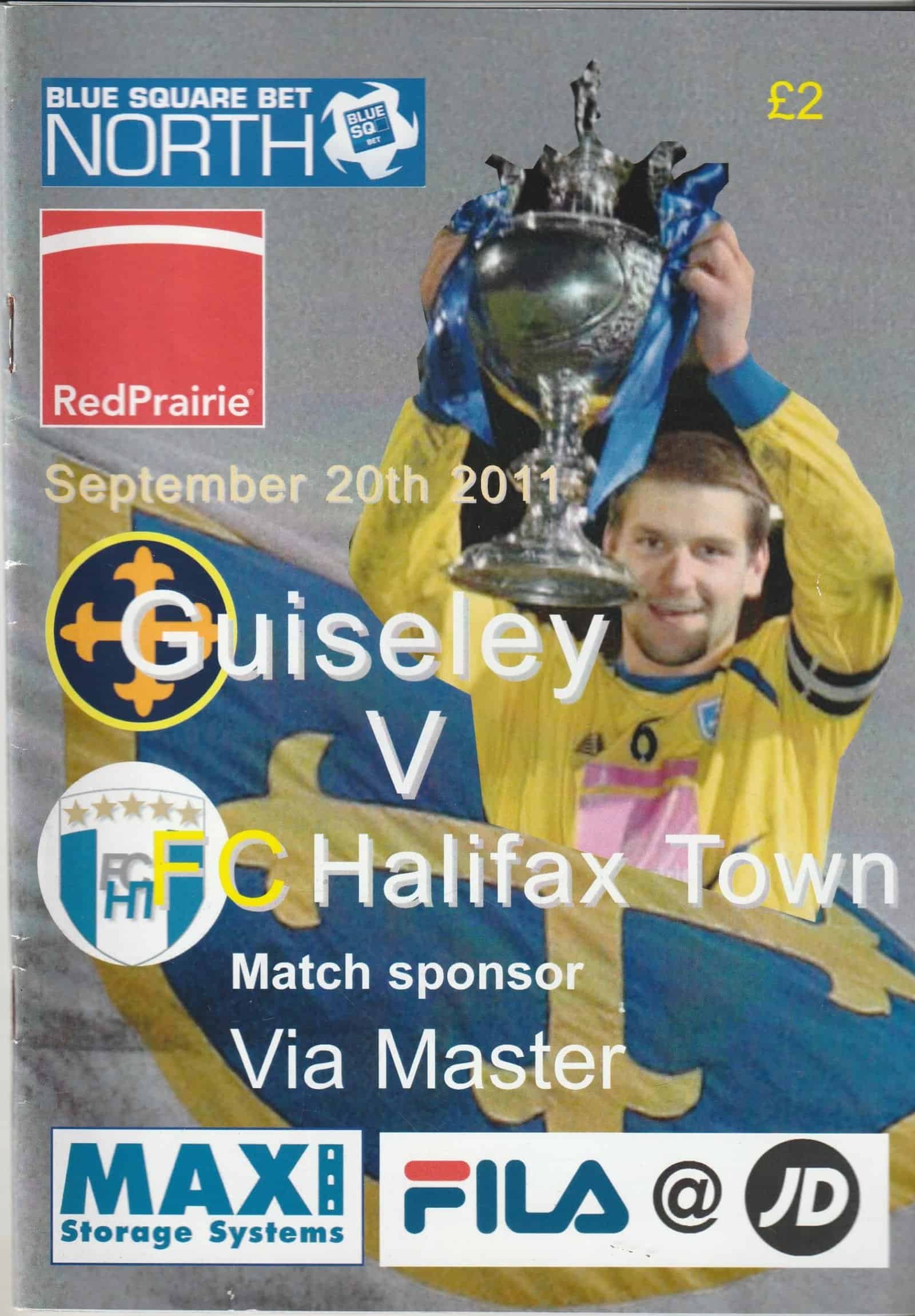 Match: Guiseley v FC Halifax Town Competition: Blue Square Bet North Date: 20–Sep-2011 Comments: Rating: 4 Condition: Very good Weight in grams: 220