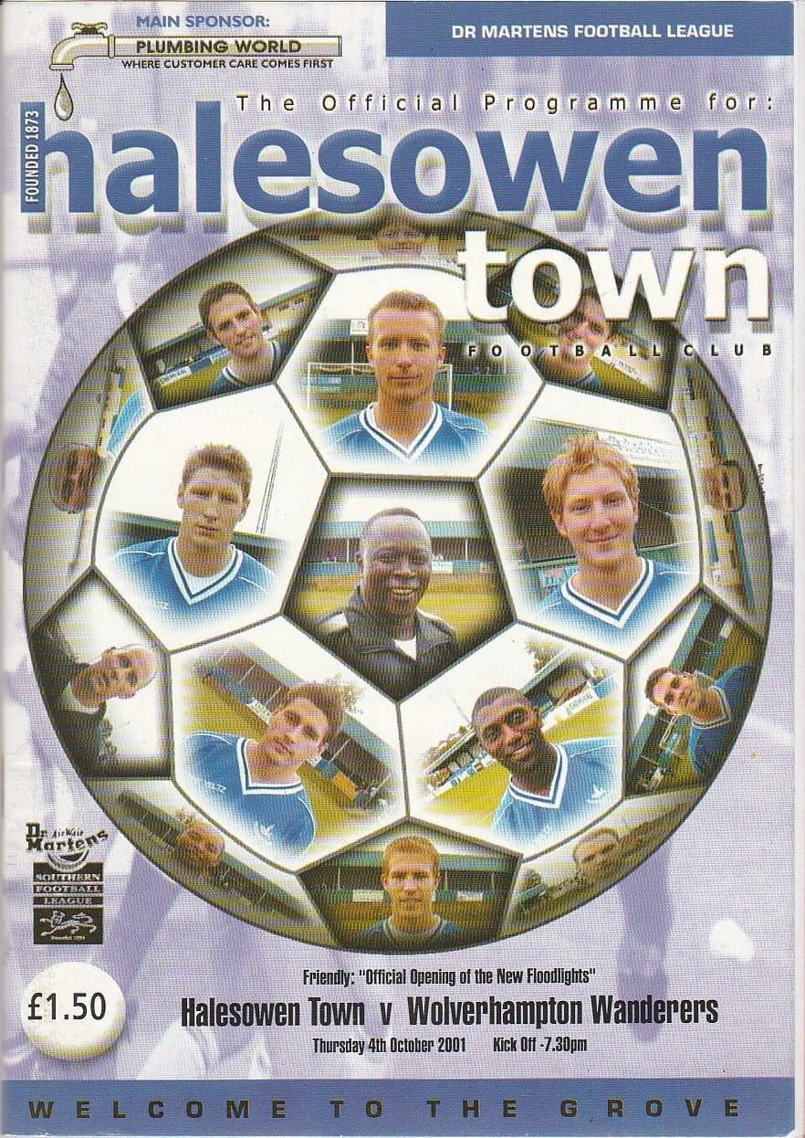 Match: Halesowen Town v Wolverhampton Wanderers Competition: Friendly Date: 04-Oct-2001 Comments: Opening of floodlights Rating: 4 Condition: Very good Weight in grams: 140