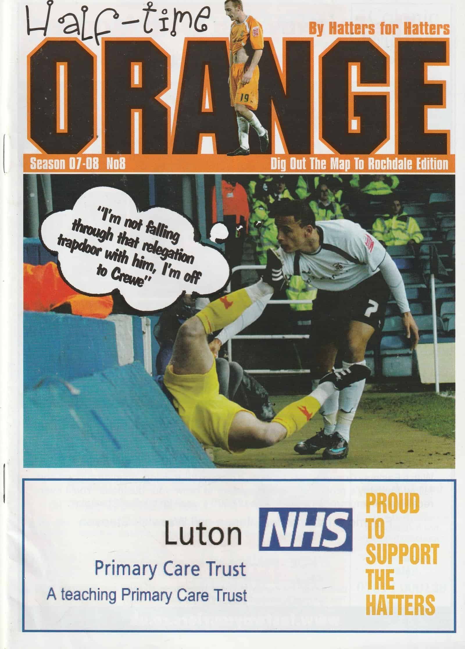 Title: Half Time Orange Club: Luton Town Issue: no8 2007-08 Comments: Rating: 4 Condition: Very good Pagination: 24 pages Weight in grams: 80
