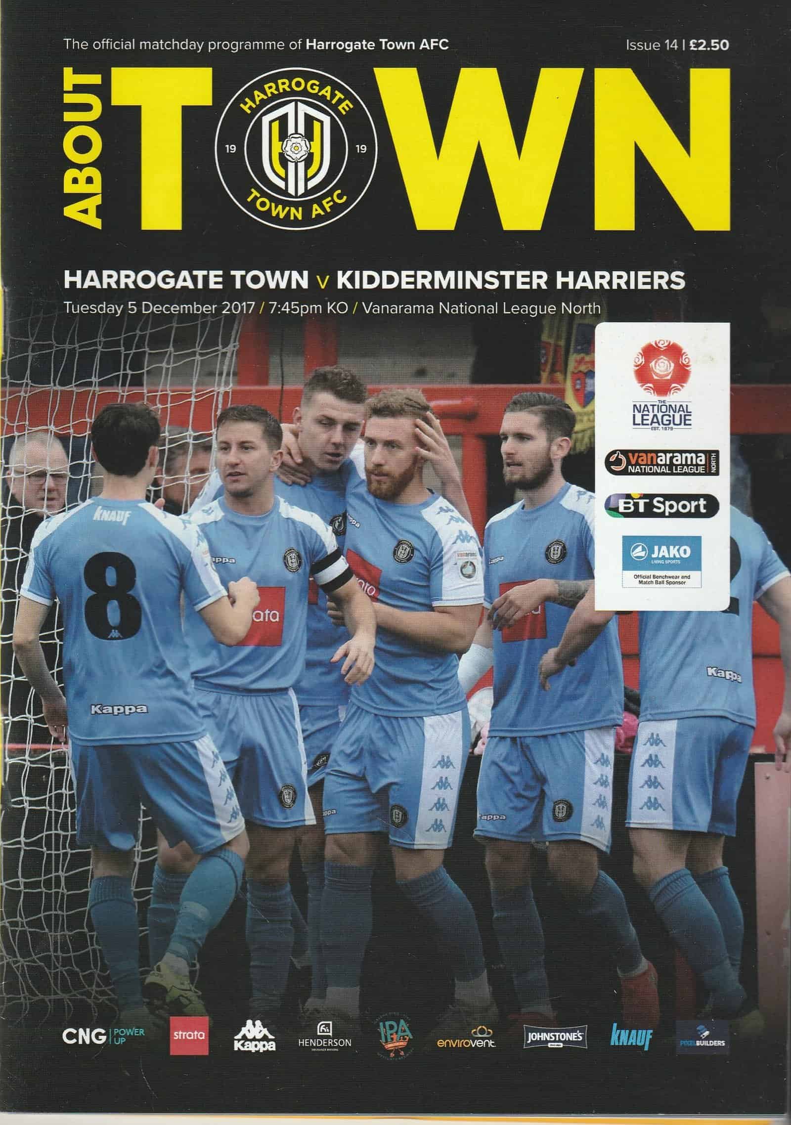 Match: Harrogate Town v Kidderminster Harriers Competition: Vanarama National League North Date: 05-Dec-2017 Comments: Rating: 4 Condition: Very good Weight in grams: 200