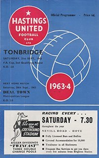 Match: Hastings United v Tonbridge Competition: FA Cup 2nd Qualifying Round Date: 21-09-1963 Comments: Rating: 3 Condition: Fold, team changes Weight in grams: 60