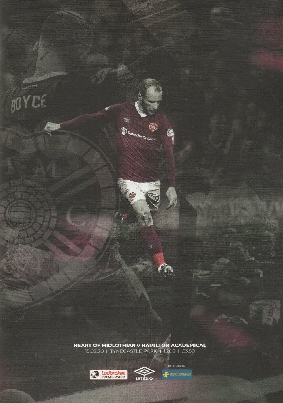 Match: Heart of Midlothian v Hamilton Academical Competition: Scottish Premier League Date: 15-Feb-2020 Comments: Rating: 5 Condition: Excellent Weight in grams: 200