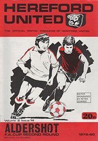 Match: Hereford United v Aldershot Competition: FA Cup 2nd Round Date: 15-12-1979 Comments: Rating: 4 Condition: Score on back, slight mark on back Weight in grams: 60