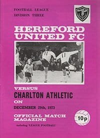 Match: Hereford United v Charlton Athletic Competition: League Division 3 Date: 29-12-1973 Comments: Rating: 4 Condition: Score on back Weight in grams: 60