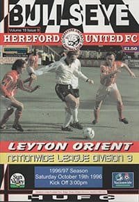 Match: Hereford United v Leyton Orient Competition: League Division 3 Date: 19-10-1996 Comments: Rating: 5 Condition: Excellent Weight in grams: 140
