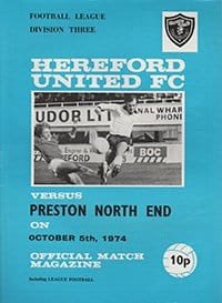 Match: Hereford United v Preston North End Competition: League Division 3 Date: 05-10-1974 Comments: Rating: 4 Condition: Score on back Weight in grams: 60