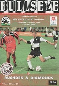 Match: Hereford United v Rushden and Diamonds Competition: Nationwide Conference Date: 24-04-1999 Comments: Rating: 5 Condition: Excellent Weight in grams: 60