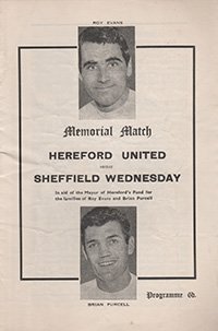 Match: Hereford United v Sheffield Wednesday Competition: Friendly Date: 05-02-1969 Comments: Roy Evans & Brian Purcell Memorial match Rating: 3 Condition: Score on team line ups page, folds Weight in grams: 40