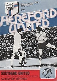 Match: Hereford United v Southend United Competition: League Division 4 Date: 13-09-1980 Comments: Rating: 4 Condition: Score on back Weight in grams: 60