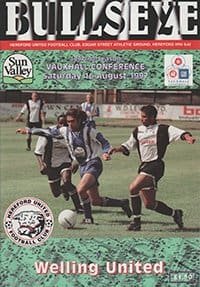 Match: Hereford United v Welling United Competition: Vauxhall Conference Date: 16-08-1997 Comments: First season back in non league – 1st home game in non league Rating: 5 Condition: Excellent Weight in grams: 100