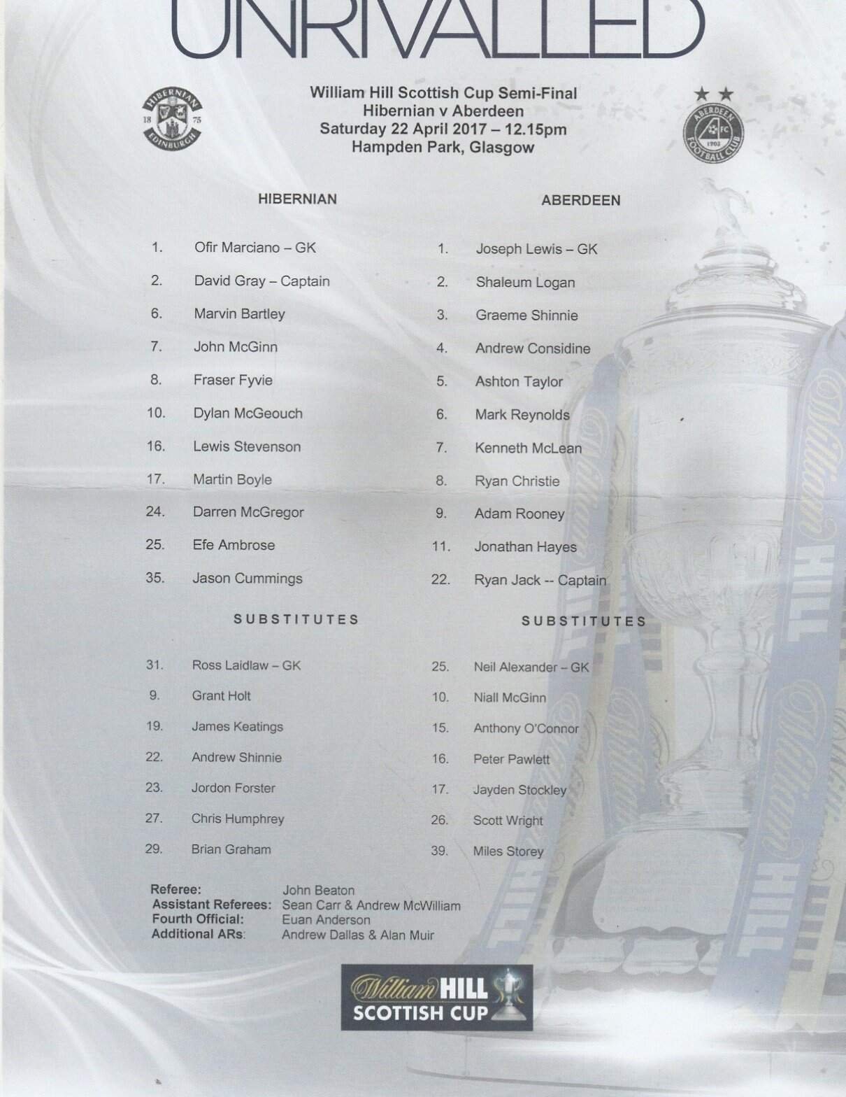Match: Hibernian v Aberdeen Competition: Scottish FA Cup Semi Final Date: 22-Apr-2017 Comments: Rating: 4 Condition: Very good Weight in grams: 20