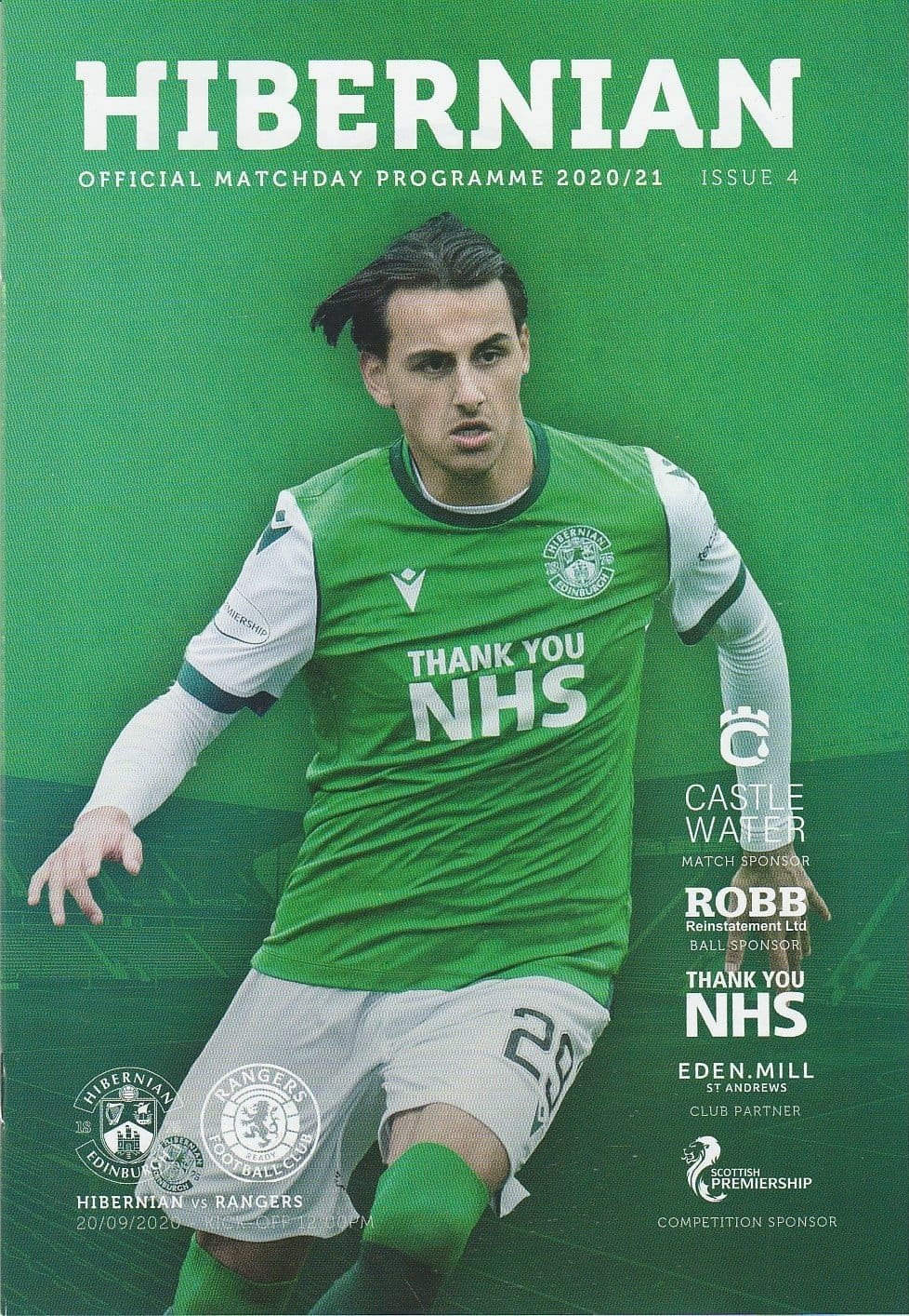Match: Hibernian v Glasgow Rangers Competition: Scottish Premier League Date: 20-Sep-2020 Comments: Rating: 4 Condition: Very good Weight in grams: 140