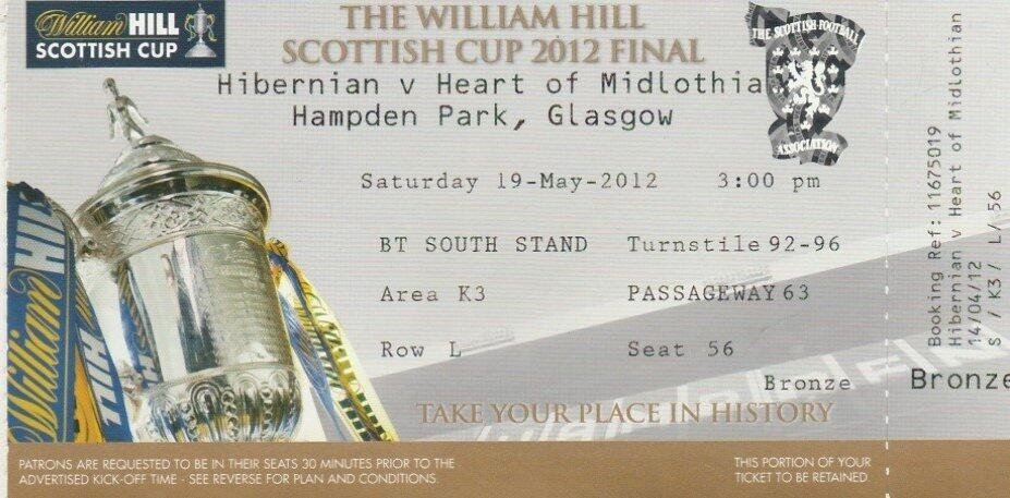 Match: Hibernian v Heart of Midlothian Competition: Scottish Cup Final Date: 19-05-2012 Comments: at Hampden Park Rating: 4 Condition: Very good Weight in grams: 10