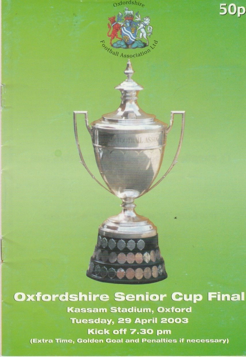 Match: Hook Norton v Oxford City Competition: Oxfordshire Senior Cup Final Date: 29-Apr-2003 Comments: Played at Oxford United FC Rating: 4 Condition: Very good Weight in grams: 80