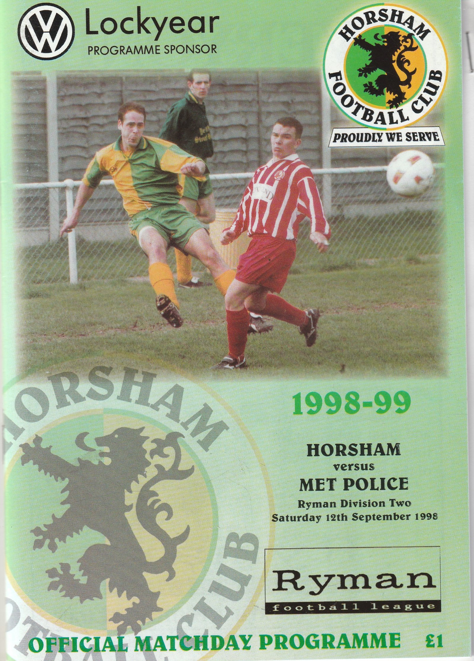 Match: Horsham v Metropolitan Police Competition: Ryman League Division 2 Date: 12-Sep-1998 Comments: Rating: 4 Condition: Very good Weight in grams: 140