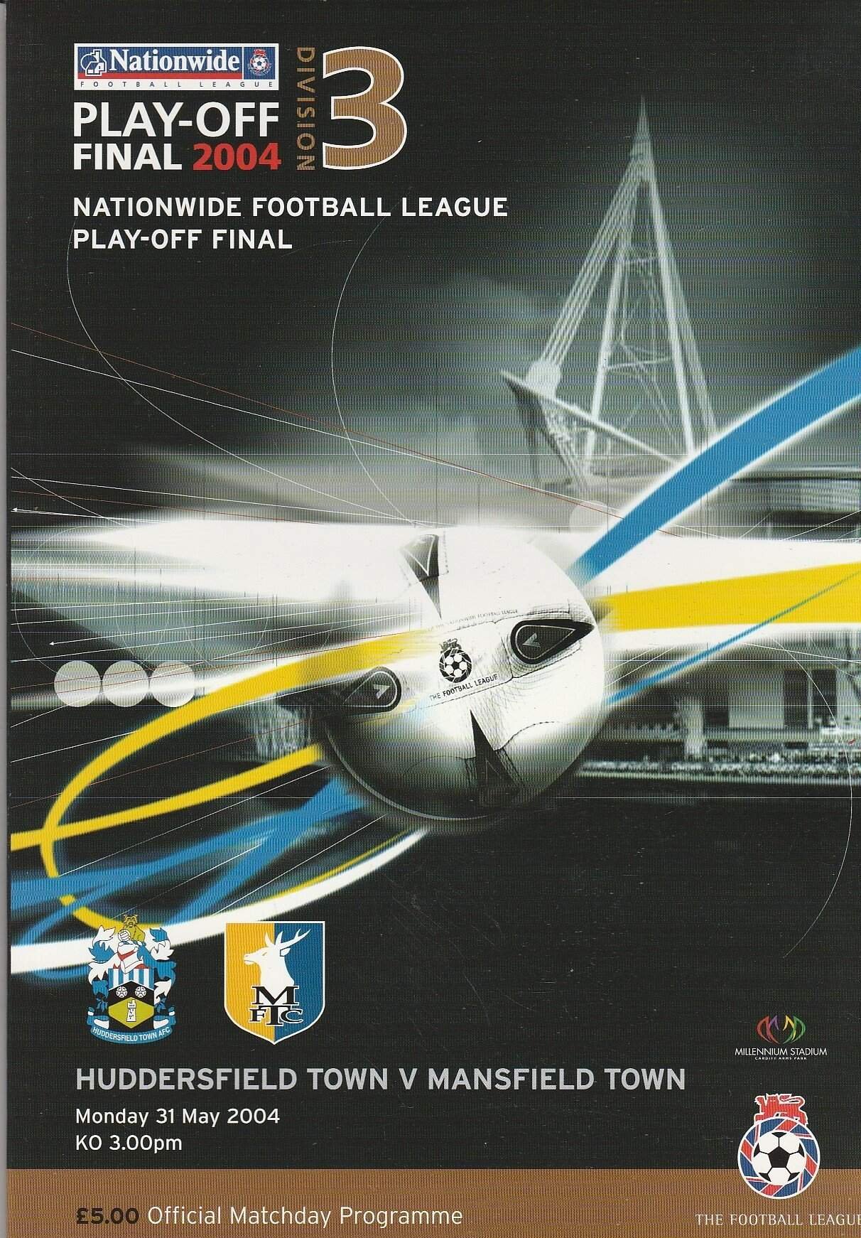 Match: Huddersfield Town v Mansfield Town Competition: League Division 3 Play off Final Date: 31-May-2004 Comments: Rating: 4 Condition: Very Good Weight in grams: 600