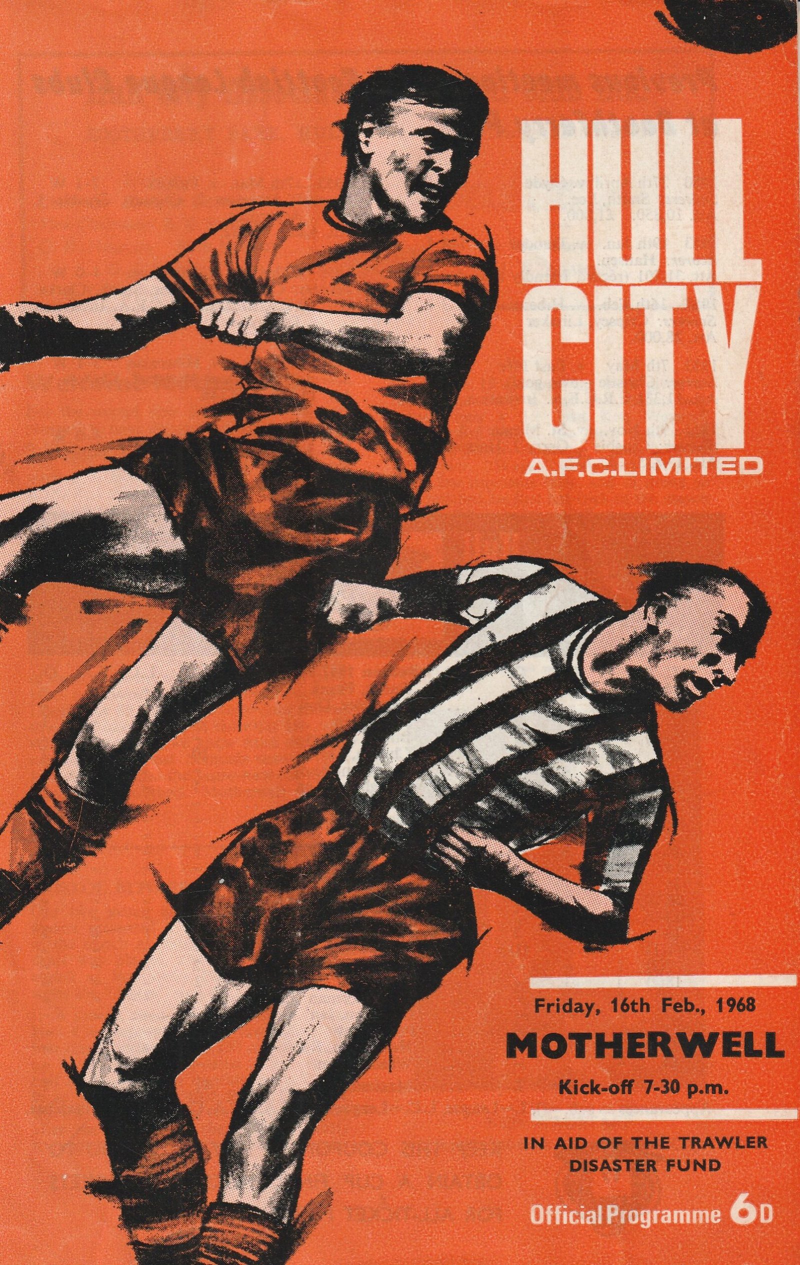 Match: Hull City v Motherwell Competition: Friendly Date: 16-Feb-1968 Comments: Rating: 3 Condition: Staples removed, mark on back page Weight in grams: 100