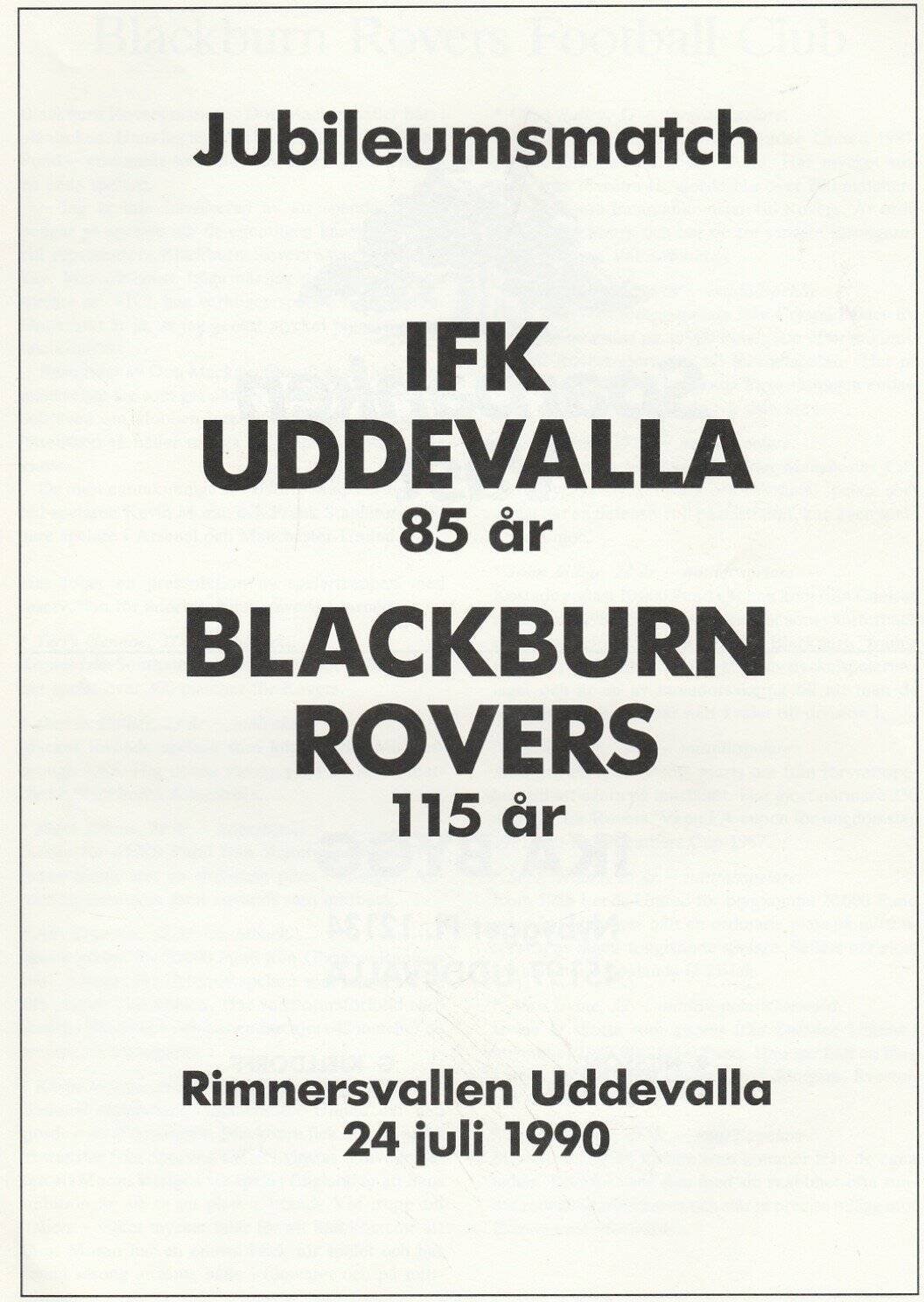 Match: IFK Uddevalla v Blackburn Rovers Competition: Friendly Date: 24-Jul-1990 Comments: Rating: 4 Condition: Very good Weight in grams: 100
