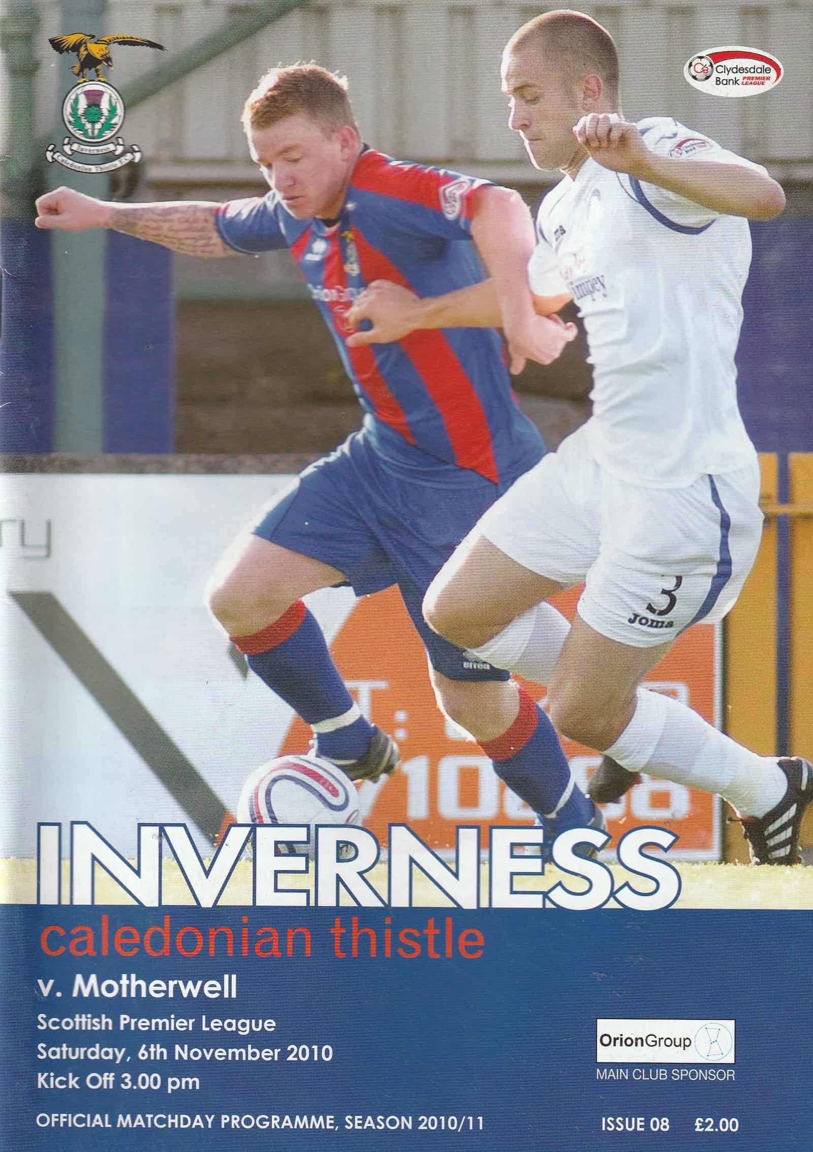 Match: Inverness Caledonian Thistle v Motherwell Competition: Scottish Premier League Date: 06-Nov-2010 Comments: Rating: 4 Condition: Very good Weight in grams: 200