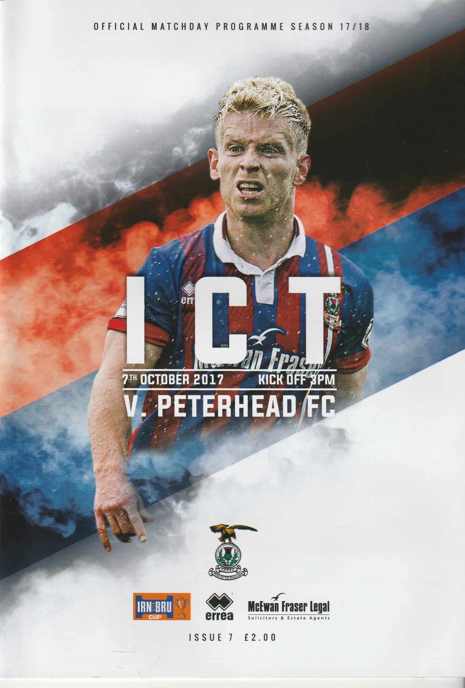 Match: Inverness Caledonian Thistle v Peterhead Competition: Irn Bru Cup Date: 07-Oct-2017 Comments: Rating: 4 Condition: Very good Weight in grams: 200