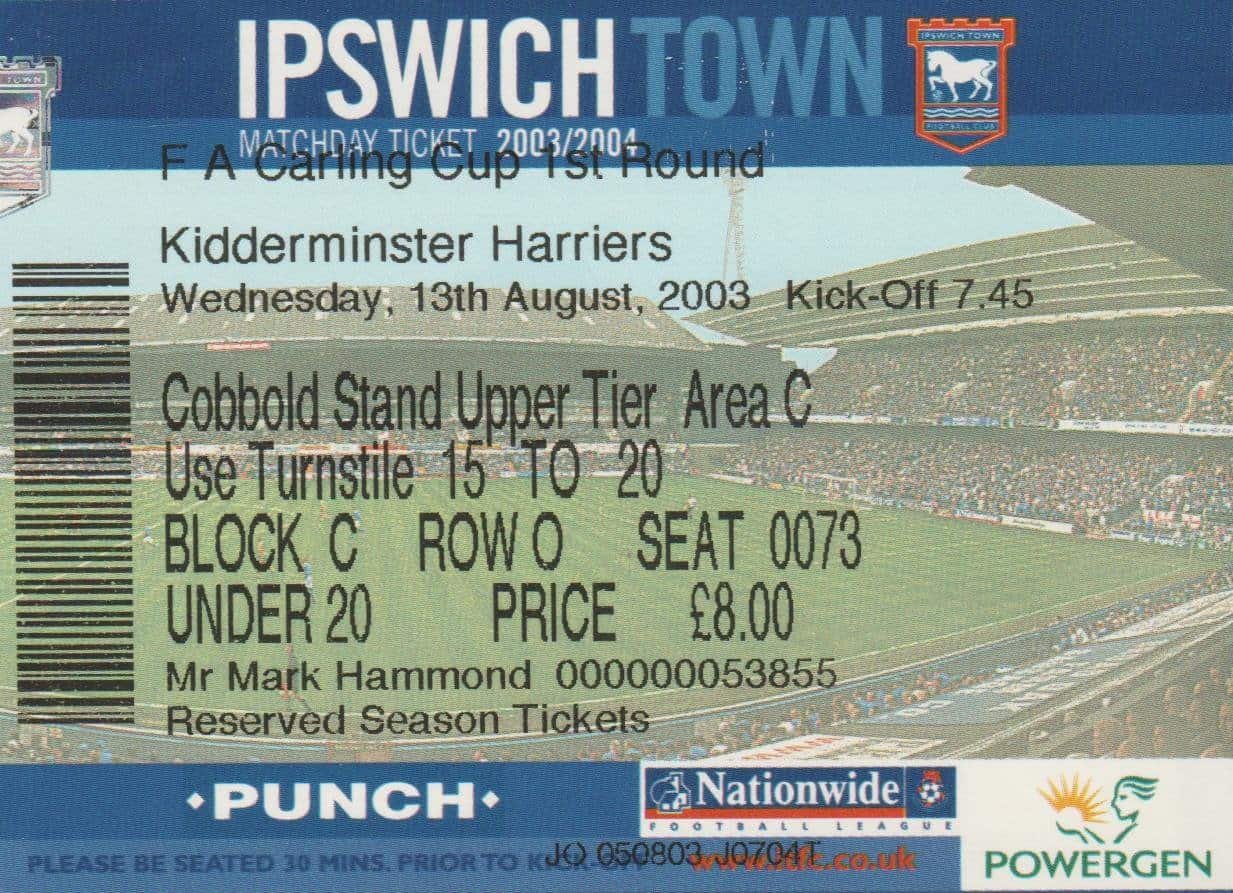 Match: Ipswich Town v Kidderminster Harriers Competition: Carling Cup 1st Round Date: 13-08-2008 Comments: Rating: 4 Condition: Very good Weight in grams: 10