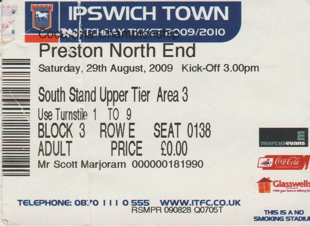 Match: Ipswich Town v Preston North End Competition: Coca Cola Championship Date: 29-Aug-2009 Comments: Rating: 3 Condition: Crease Weight in grams: 10