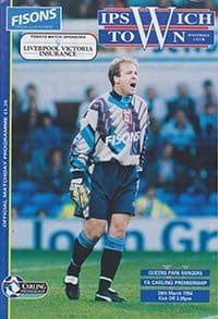 Match: Ipswich Town v Queens Park Rangers Competition: Premier League Date: 26-03-1994 Comments: Rating: 5 Condition: Excellent Weight in grams: 80