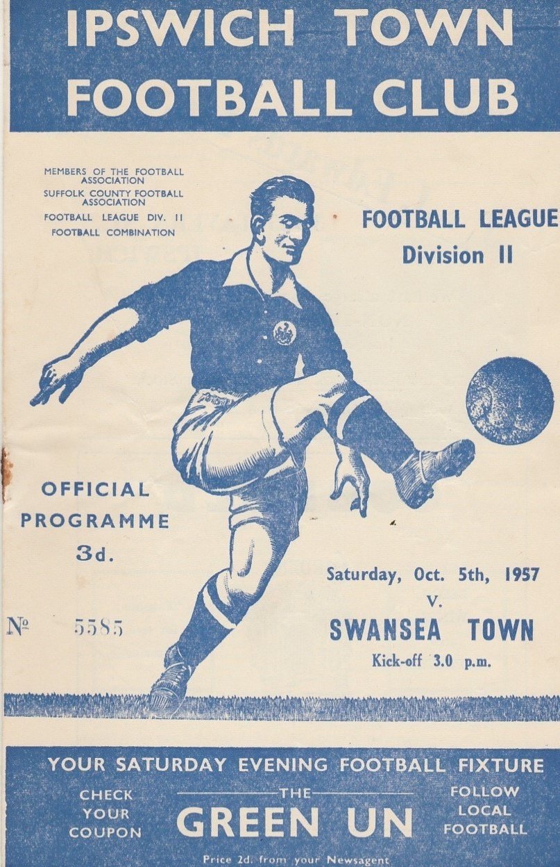 Match: Ipswich Town v Swansea Town Competition: League Division 2 Date: 05-Oct-1957 Comments: Rating: 3 Condition: Rusty staple Weight in grams: 40
