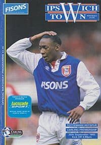 Match: Ipswich Town v Tottenham Hotspur Competition: Premier League Date: 26-09-1993 Comments: Rating: 5 Condition: Excellent Weight in grams: 80