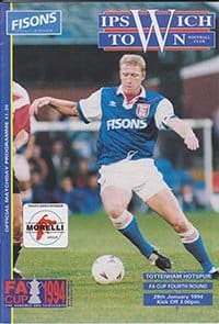 Match: Ipswich Town v Tottenham Hotspur Competition: FA Cup 4th Round Date: 29-01-1994 Comments: Rating: 5 Condition: Excellent Weight in grams: 80