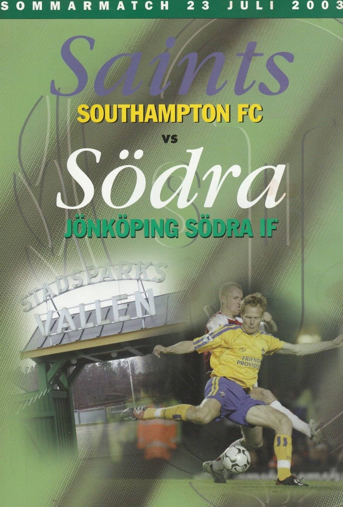 Match: Jönköping Södra v Southampton Competition: Friendly Date: 23-Jul-2003 Comments: Rating: 4 Condition: Very good Weight in grams: 120