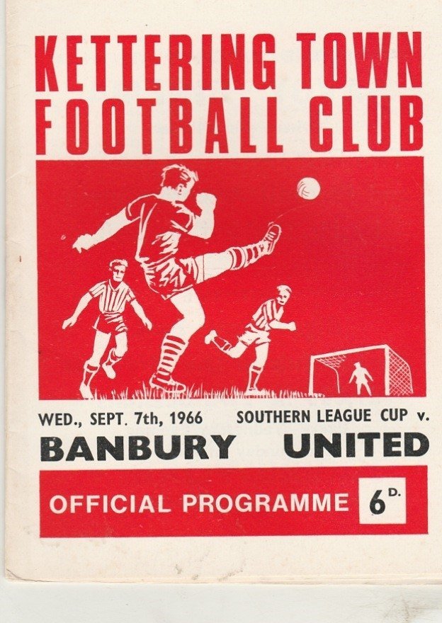 Match: Kettering Town v Banbury United Competition: Southern League Cup 1st Round 2nd leg Date: 07-Sep-1966 Comments: Rating: 4 Condition: Very good Weight in grams: 80