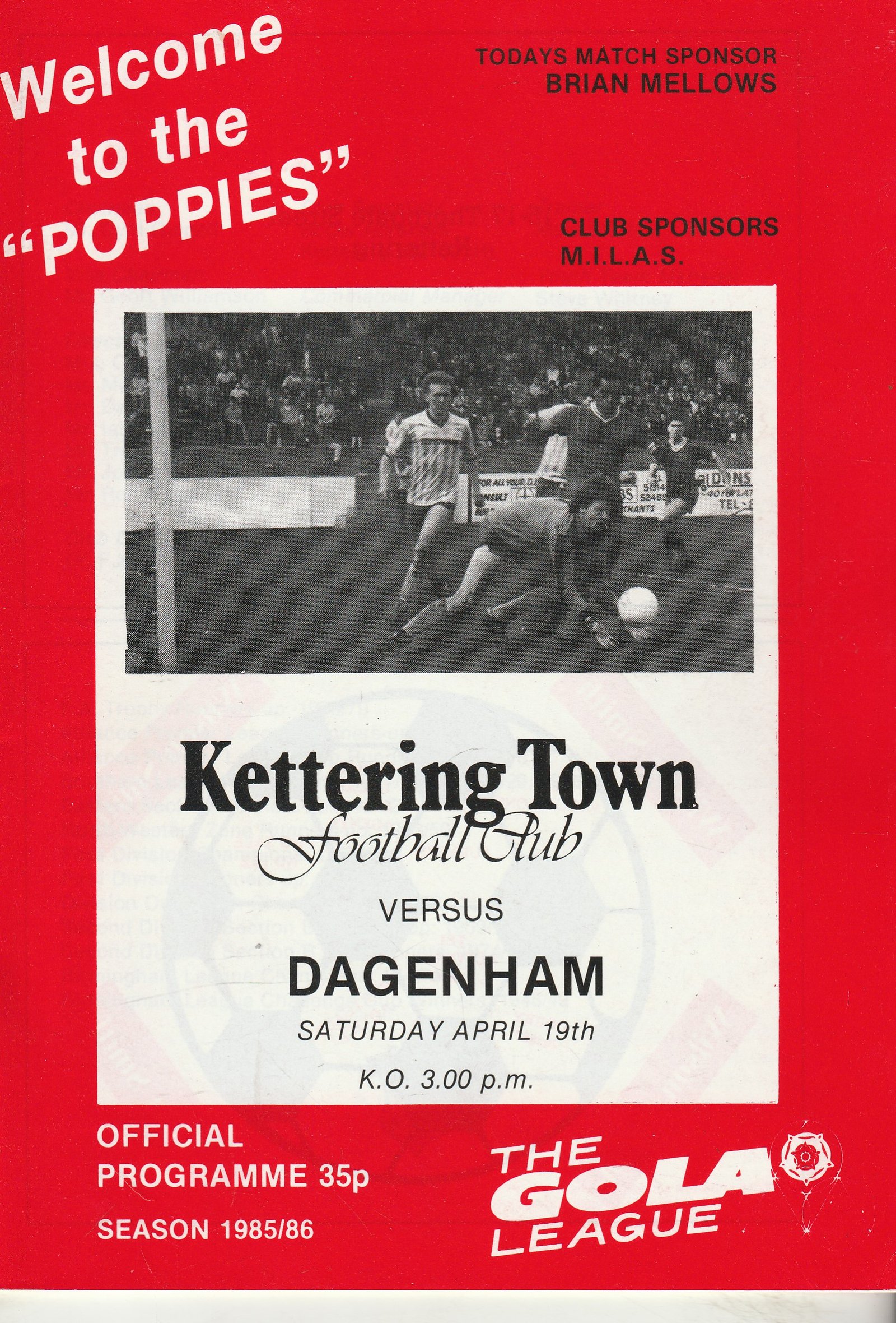 Match: Kettering Town v Dagenham Competition: GM Vauxhall Conference Date: 19-Apr-1986 Comments: Rating: 4 Condition: Very good Weight in grams: 100