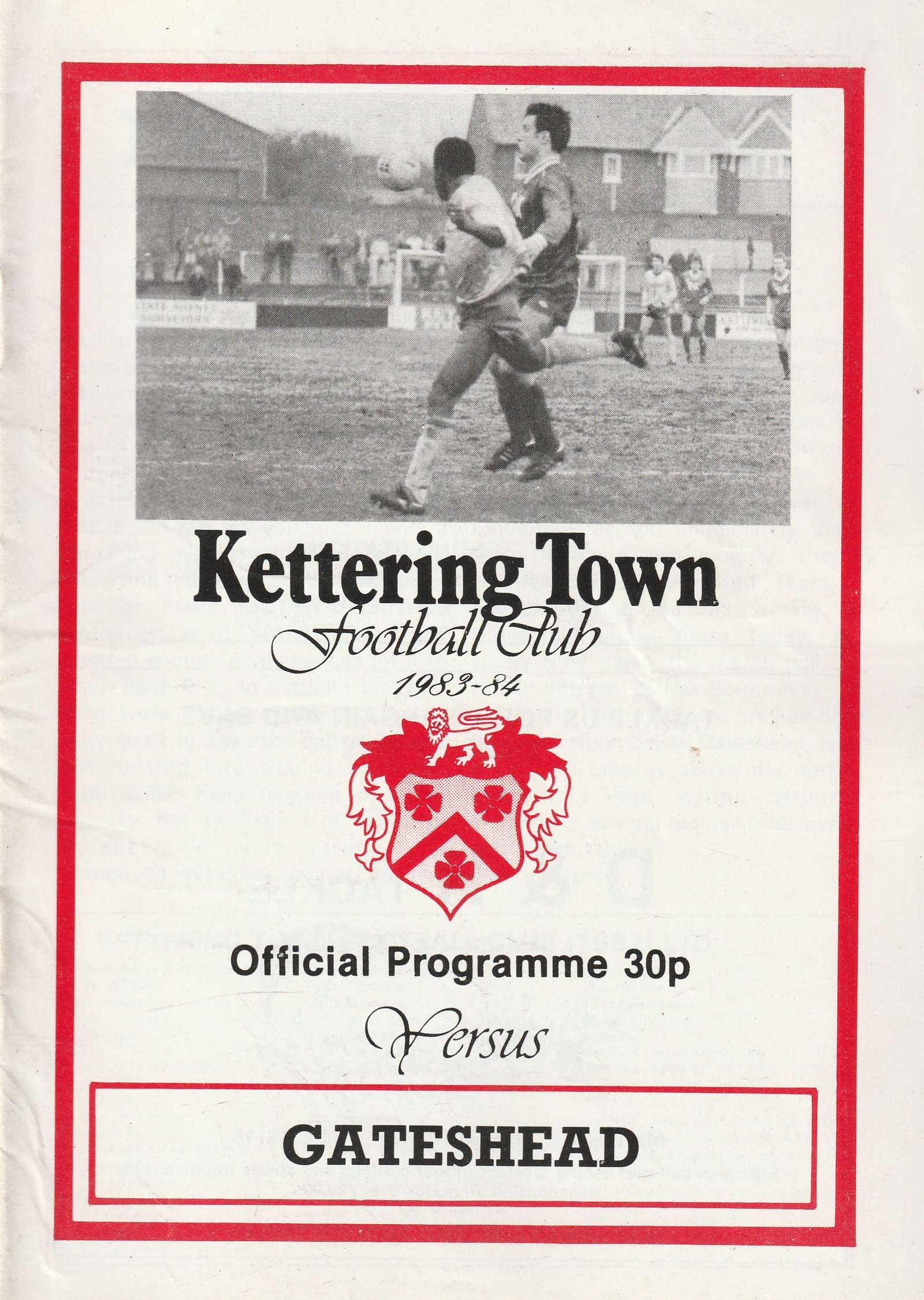 Match: Kettering Town v Gateshead Competition: Alliance Premier League Date: 10-Mar-1984 Comments: Rating: 4 Condition: Very good Weight in grams: 60