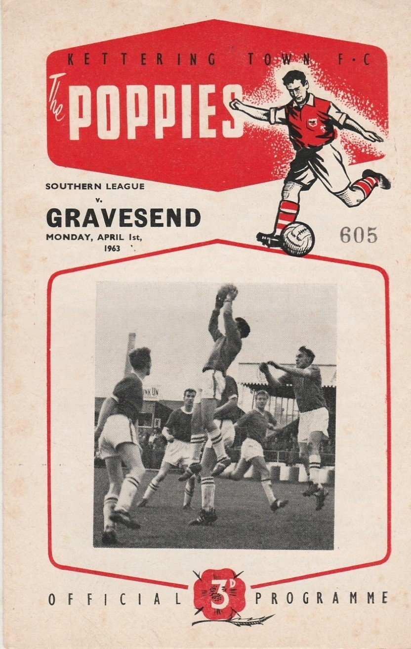 Match: Kettering Town v Gravesend & Northfleet Competition: Southern League Date: 01-Apr-1963 Comments: Rating: 3 Condition: Light marks on cover, team changes Weight in grams: 40
