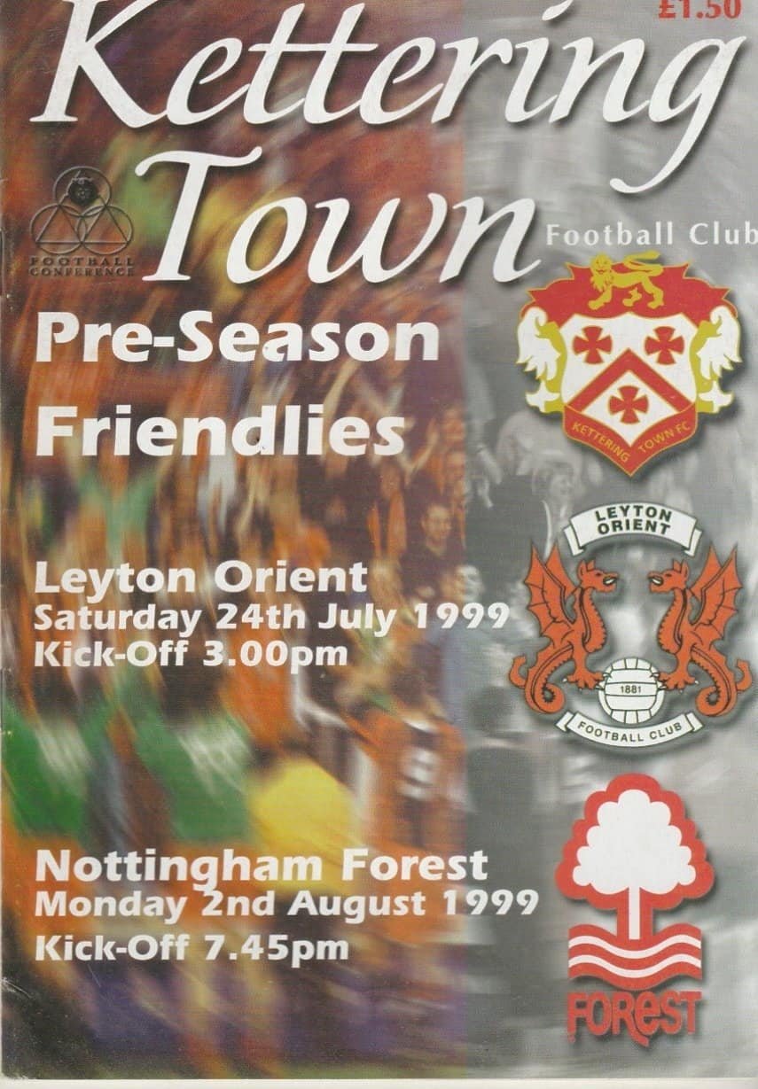 Match: Kettering Town v Nottingham Forest Competition: Friendly Date: 02-Aug-1999 Comments: Joint issue for Leyton Orient game Rating: 4 Condition: Very good Weight in grams: 100