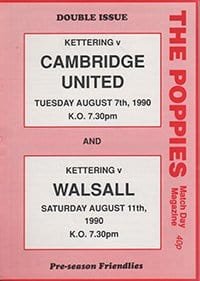 Match: Kettering Town v Walsall Competition: Friendly Date: 11-08-1990 Comments: Joint programme for Cambridge game Rating: 5 Condition: Excellent Weight in grams: 40