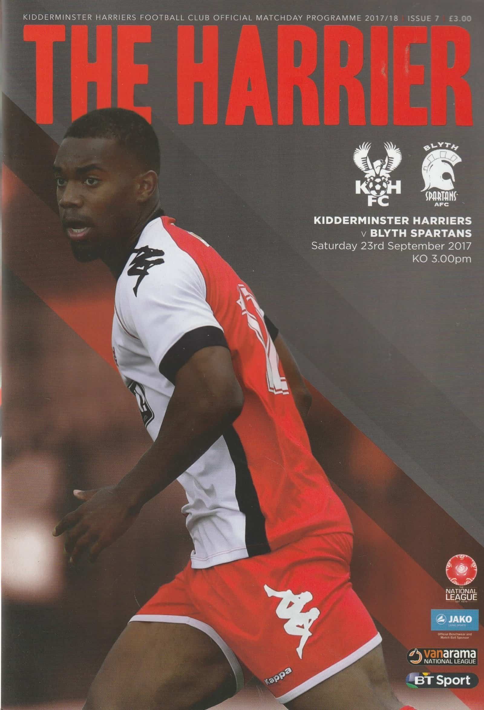 Match: Kidderminster Harriers v Blyth Spartans Competition: Vanarama National League North Date: 23-Sep-2017 Comments: Rating: 4 Condition: Very good Weight in grams: 180