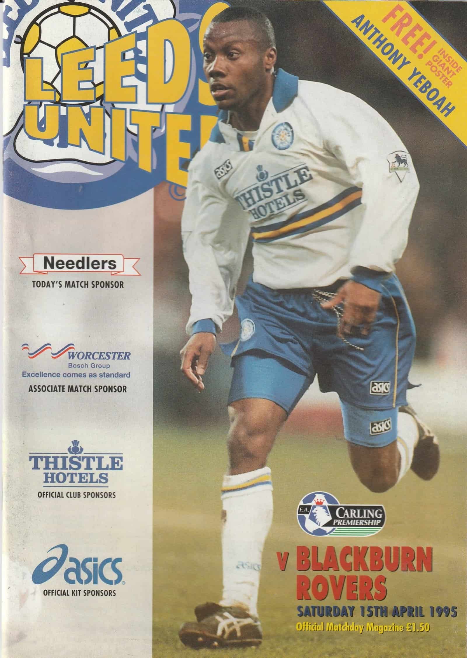 Match: Leeds United v Blackburn Rovers Competition: Carling Premiership Date: 15-Apr-1995 Comments: Rating: 4 Condition: Very good Weight in grams: 140