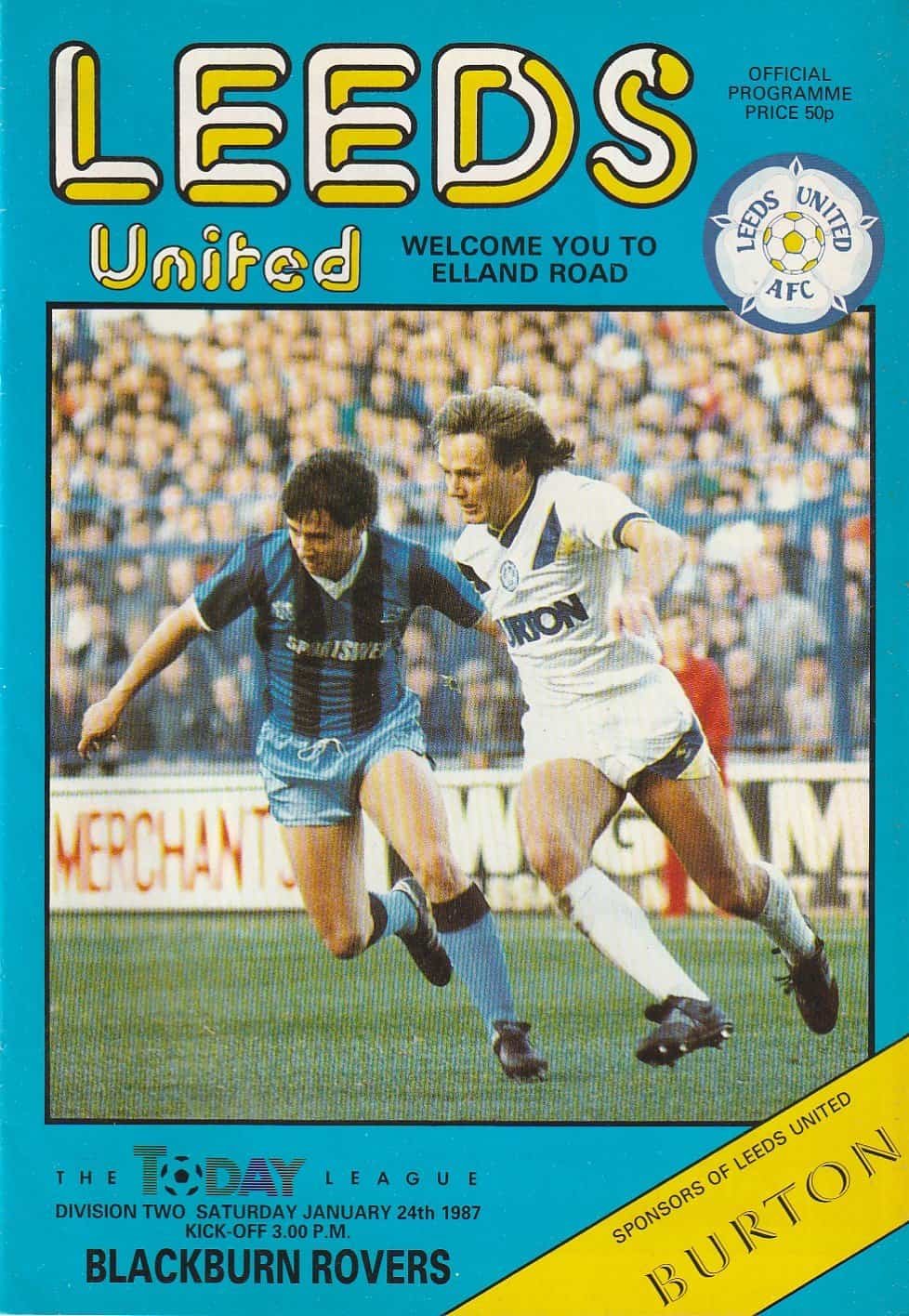 Match: Leeds United v Blackburn Rovers Competition: League Division 2 Date: 24-Jan-1987 Comments: Rating: 4 Condition: Very good Weight in grams: 80