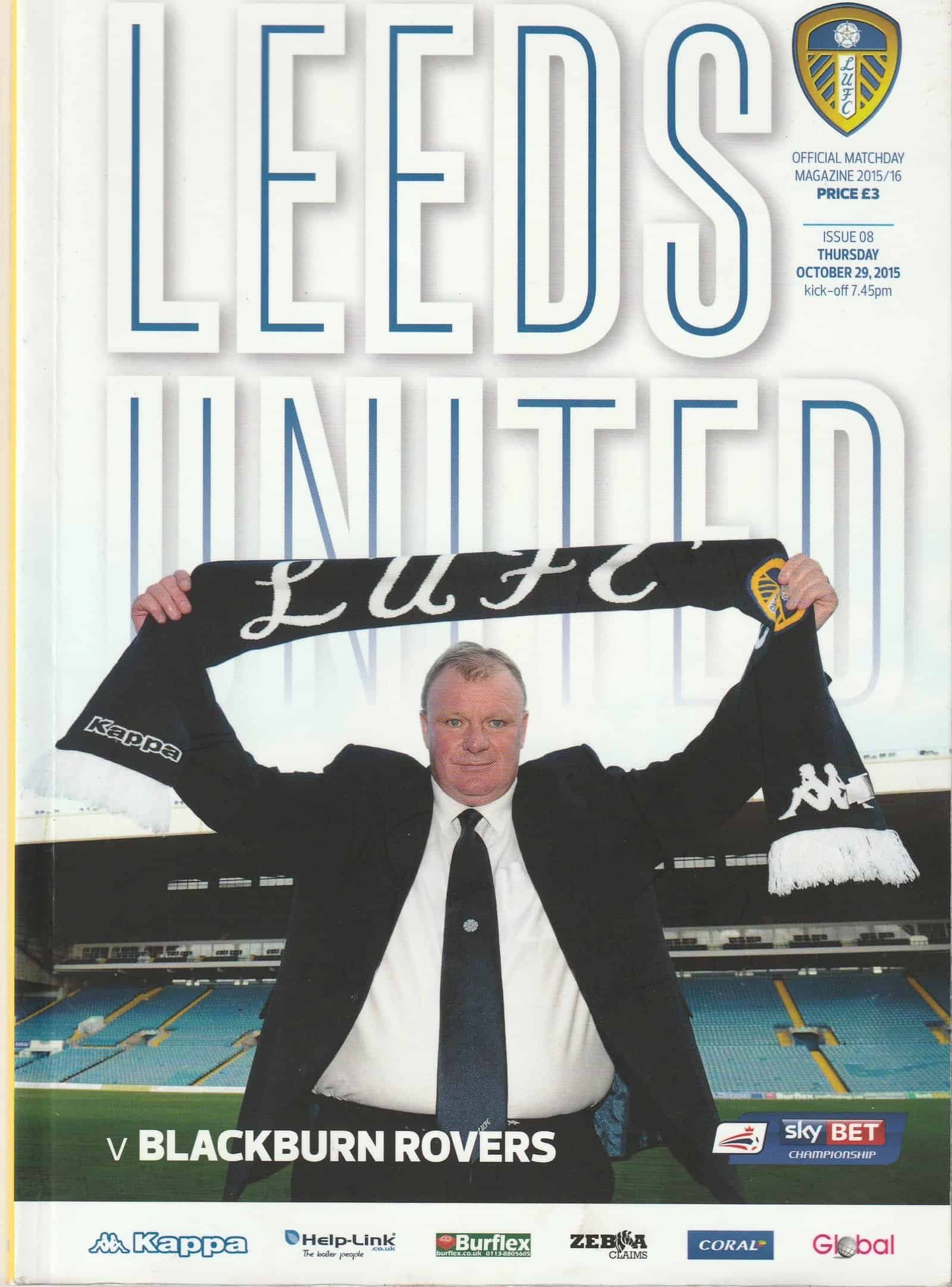 Match: Leeds United v Blackburn Rovers Competition: Coca Cola Championship Date: 29-Oct-2015 Comments: Rating: 4 Condition: Very good Weight in grams: 240