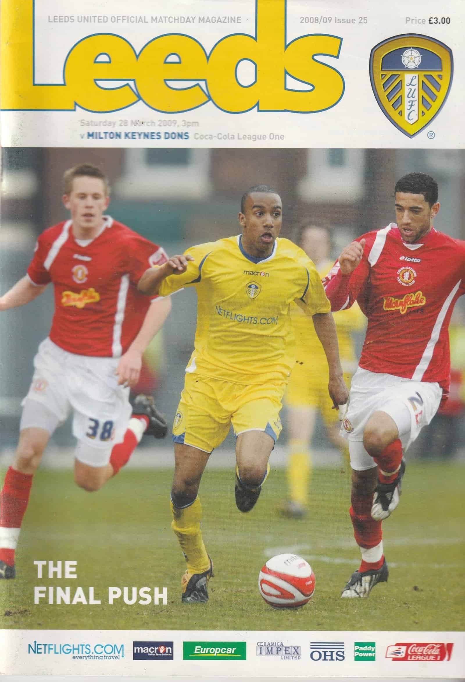 Match: Leeds United v Milton Keynes Dons Competition: League 1 Date: 28-Mar-2009 Comments: Rating: 4 Condition: Very good Weight in grams: 260
