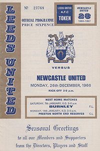 Match: Leeds United v Newcastle United Competition: League Division 1 Date: 26-12-1966 Comments: Rating: 4 Condition: Very good Weight in grams: 40
