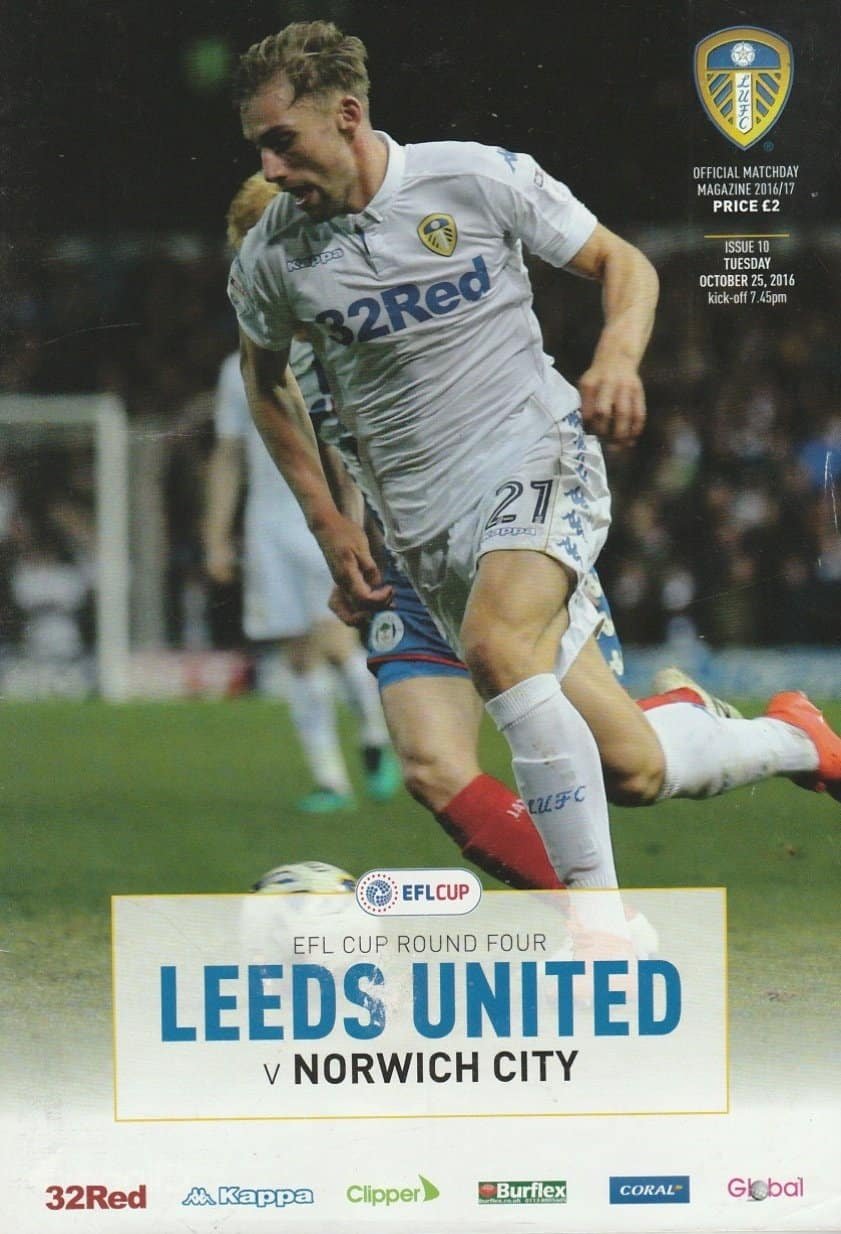 Match: Leeds United v Norwich City Competition: EFL Cup 4th Round Date: 25-Oct-2016 Comments: Rating: 3 Condition: Handling wear to edge of cover Weight in grams: 120